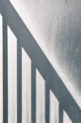 Winters coming. No doubt about that. Sun’s coming up later, going down earlier. Temperature falling. And the frost is out. Glanced through the window this morning to see our glass deck panels opaque and glittering with the sun backlighting the whole deal. The shadow from the adjacent deck rail created an interesting graphic element. So out I go, in socks, to grab a quick frame.