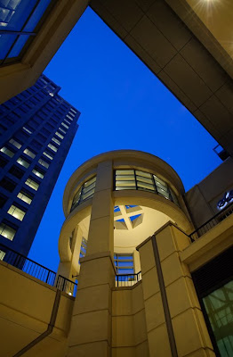Returning from a recent trip to Seattle, or more specifically east of Seattle in the beautiful city of Bellevue. Lots of great modern glass architecture there that looks particularly nice in the fading blue light of dusk. These are three perspectives of one the ubiquitous Microsoft offices in town (the main campus is down the road in Redmond). Hope they don’t mind this is being posted from a Mac.
