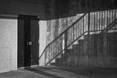 With the family anxiously waiting for me to get a move on I glance another opportunity at the arena entrance. The low sun burning in created this opportunity to capture some great shape, line and texture. I saw it in black and white from the outset, wanting to focus on those elements. The shadows of the stairs lead into the door. Such warm color blasting onto the walls only detracted from that. My conversion (via Nik’s SilverEfex Pro) separated the yellows from the other tones to bring out the texture and shadow. Unfortunately I also had to clone out a pile of discarded cigarette butts. Nasty.